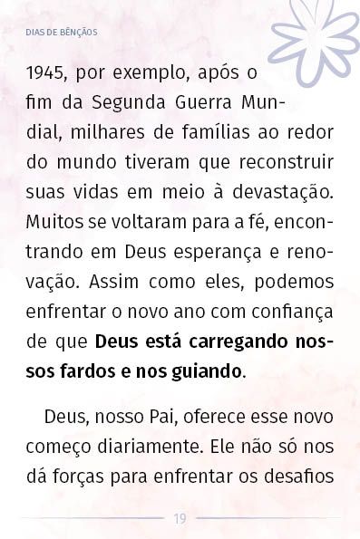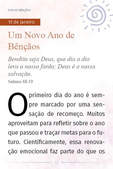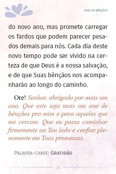 Não deixe para depois. Aproveite esse momento e faça do devocional Dias de Bênçãos o seu presente de Ano Novo para uma vida mais abundante e intensa com o Pai!